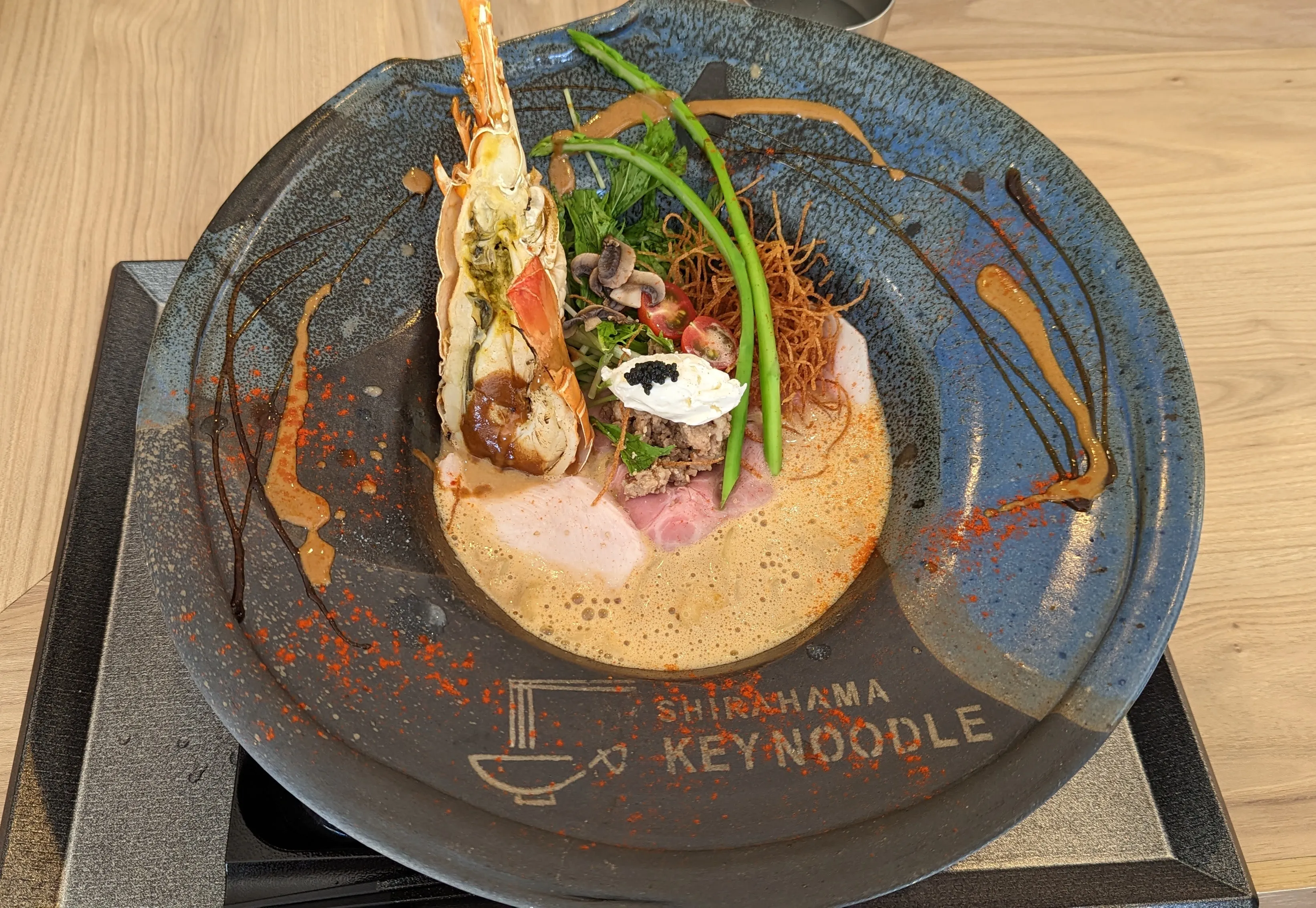 お店の名前は、SHIRAHAMA KEY NOODLE だきしめ鯛。鯛や伊勢海老を始めとする地元食材を使ってフレンチ風にアレンジしたラーメンが食べれるらしい。