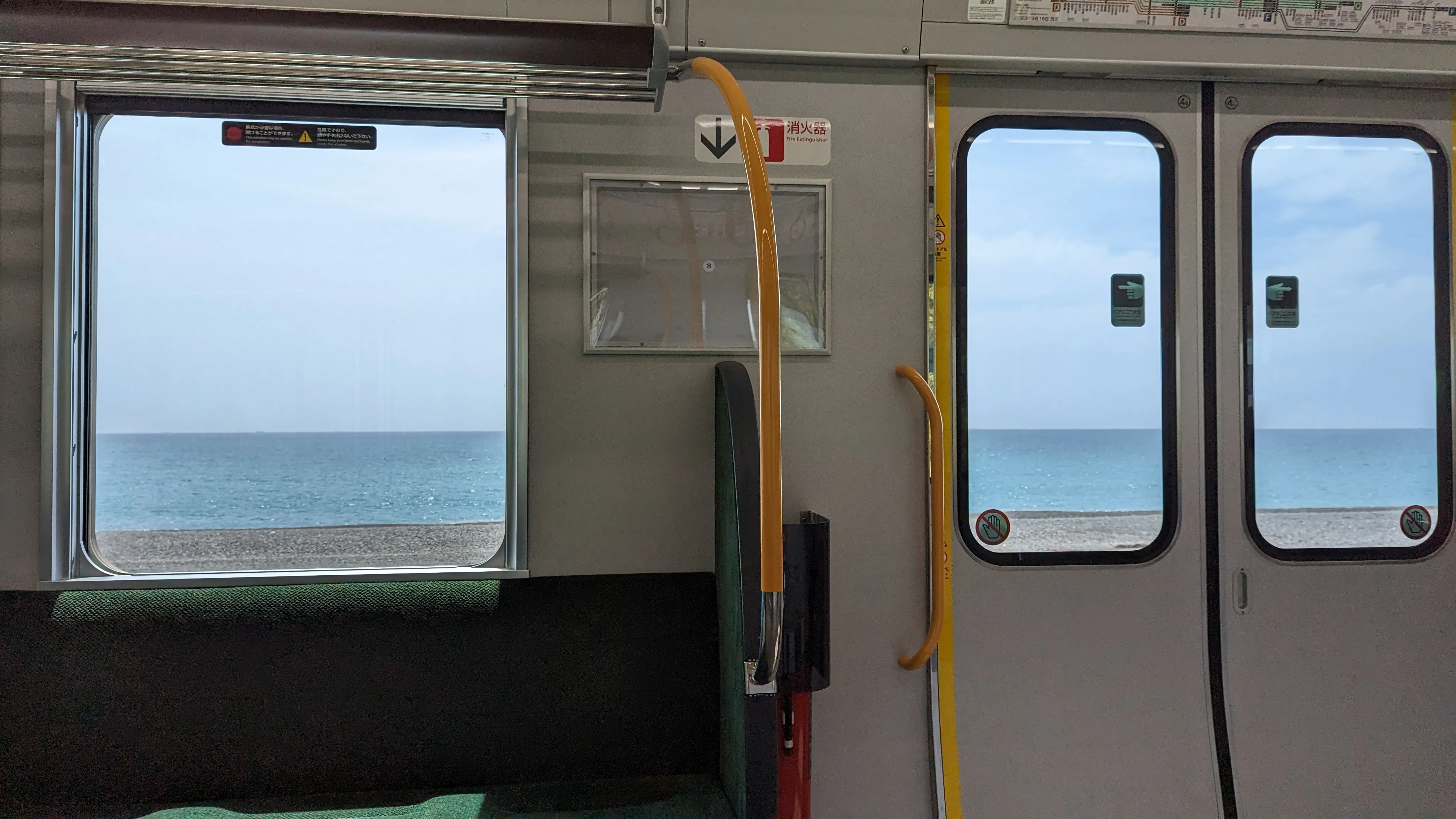 お蛇浦海岸の後はセントレアに向かうために電車で移動。乗車時間6時間超。前半3時間ぐらいは車窓からの景色を楽しんだが、時間が経つにつれて辛くなってきた。
