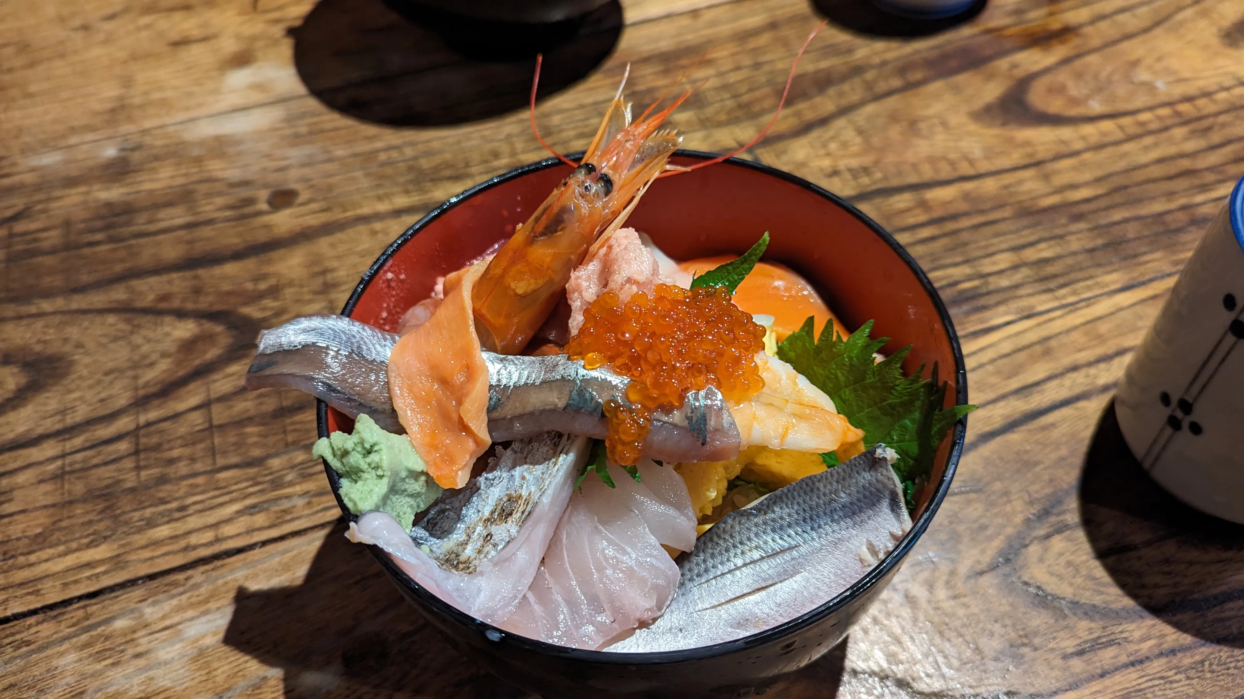 2024-04-162024-04-16昼に前から行きたかった海鮮丼のお店へ。 油揚げが入ってた。珍しい。 とても美味しかったけど、ネタ大盛りご飯大盛りで無事に食い倒れた。 ブログを SSG から SSR に移行しようとしてるけど、まだ AppRouter に慣れてなくて時間が掛かってる。 フロント強者になりたい。